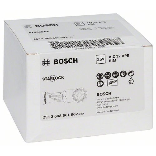 Das Sägeblatt Starlock AIZ 32 APB ermöglicht präzise bündige Schnitte und tiefe Tauchschnitte in Holz, Metall und Kunststoff. Dank der abgerundeten Blattspitze (Curved-Tec) sind die Schnitte von Anfang an präzise. Das robuste Starlock-Aufnahmesystem erhöht die Kontrolle über die Führung und ermöglicht mit direkter Kraftübertragung und reduzierter Lateralschwingung hochgradig präzise Schnitte. Dieses vielseitig einsetzbare Blatt schneidet auch sehr harte Verbundwerkstoffe aus Holz und Metall, wie auch ungehärtete Nägel und Schrauben, Rohre aus Nichteisenmetall und Profile kleinerer Abmessungen. Die extrem verschleißfesten und wärmebeständigen Zähne aus HSS-Stahl (High Speed Steel, Schnellarbeitsstahl) bieten eine lange Lebensdauer in Nichteisenmetallen und Schleifmaterialien. Das Starlock-Aufnahmesystem ermöglicht einen schnellen Blattwechsel ohne Blattberührung in drei Sekunden. Das Aufnahmesystem ermöglicht durch seine dreidimensionale enge Passung maximale Kraftübertragung zwischen Maschine und Zubehör.
