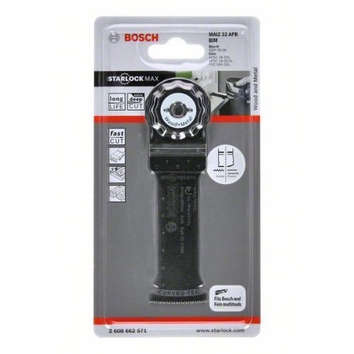 Das Tauchsägeblatt Starlock MAIZ 32 APB für besonders tiefe Schnitte in Holz und ungehärtetes Metall. Seine Länge von 80 mm erhöht die Reichweite für ausgedehnte Schnitte. Die direkte Kraftübertragung und das robuste Starlock-Aufnahmesystem reduzieren Lateralschwingung und ermöglichen längere präzise Schnitte. Mit diesen robusten Merkmalen ist dieses Produkt ideal geeignet für tiefe und breite Tauchschnitte in Holz Nägel, Holzbalken sowie zum Schneiden von ungehärteten Nägeln, Schrauben und Stahlprofilen kleinerer Abmessungen. Das Blatt durchsägt auch Holz, ungehärtetes Metall, Kunststoff, Paneele mit Kunststofflaminierung und Gipskartonplatten. Eine abgerundete Blattspitze (Curved-Tec) ermöglicht präzise und glatte Tauchschnitte. Die Bimetallverbindung aus Blatt aus HCS-Stahl (Stahl mit hohem Kohlenstoffgehalt) und Zähnen aus HSS-Stahl (Schnellarbeitsstahl) ist verschleiß- und hitzeresistent und garantiert dem Blatt beim Schneiden von ungehärtetem Metall und abrasivem Material eine hohe Lebensdauer. Das System Starlock Max ermöglicht selbst bei härtestem Einsatz maximale Schnitttiefe, Geschwindigkeit und Vielseitigkeit. Zusätzlich ermöglicht das Starlock-Aufnahmesystem schnellen Blattwechsel in drei Sekunden ohne Blattberührung. Das spezielle Starlock-Aufnahmesystem ermöglicht durch seine dreidimensionale enge Passung maximale Kraftübertragung zwischen Maschine und Zubehör.