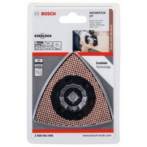 Der Schleifteller Starlock AVZ 90 RT10 Carbide RIFF bietet besonders hohe Lebensdauer beim Entfernen von Mörtel und Fliesenkleber. Die Platte ist für hohe Verschleißfestigkeit und somit außergewöhnlich lange Nutzungsdauer mit hochwertigem Carbide-Korn der Körnung 100 besetzt. Der offene Besatz ermöglicht aggressiven Materialabtrag ohne Zusetzen oder Ablagerung für eine höhere Lebensdauer der Platte. Mit der deltaförmigen Platte lassen sich schwer zugängliche Ecken erreichen. Diese Schleifplatte ist ideal für alle Schleif- und Raspelarbeiten auf Holzmaterialien aller Art geeignet. Das Aufnahmesystem ermöglicht durch seine dreidimensionale enge Passung maximale Kraftübertragung zwischen Maschine und Zubehör.