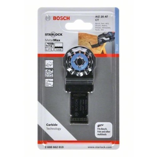 Das Tauchsägeblatt Starlock AIZ 20 AT Metal Max hat beim Schneiden von gehärtetem Metall eine 30-fach höhere Lebensdauer als Blätter aus Bimetall. Die hochwertigen Carbide-Zähne zertrennen robust und mit höchstem Verschleißwiderstand auch extremes Material, wie selbst gehärtetes Eisen und sehr abrasives Material. Dieses Blatt wird verwendet für anspruchsvolle Metallarbeiten in Edelstahl und Tauchschnitte in sehr abrasives Material.‎ Es schneidet Metalle, Gipskartonplatten, Zementfaserplatten, faserverstärkte Kunststoffe sowie gehärtete Nägel und Schrauben. Das Starlock-Aufnahmesystem ermöglicht ‌einen schnellen Blattwechsel ohne Blattberührung in drei Sekunden.‌ Das Aufnahmesystem ermöglicht durch seine dreidimensionale enge Passung maximale Kraftübertragung zwischen Maschine und Zubehör.