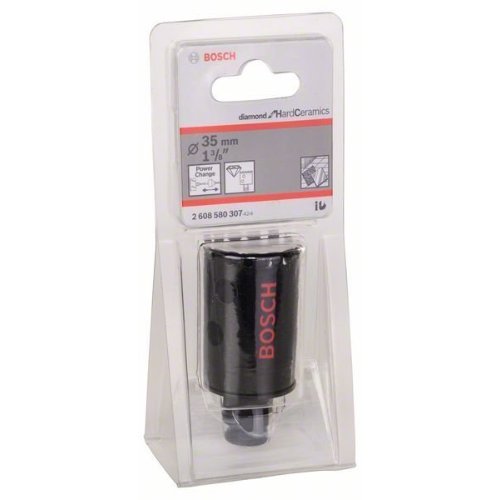 Die Diamond for Hard Ceramics Lochsäge schneidet härteste Fliesen. Der Diamantbesatz verleiht dieser Lochsäge hohe Standzeit für das Schneiden in Keramik aller Art und Stärke. Auch ermöglicht die dünne Schneidekante schnelle und saubere Schnitte. Diese Lochsäge ist für das Schneiden von Wand- und Bodenfliesen geeignet. Der einzigartige Power-Change Adapter dieser Diamantlochsäge für Hartkeramik ist das schnellste Stecksystem auf dem Markt. Er ermöglicht das Trennen und Verbinden von Lochsäge und Zentrierbohrer mit nur einem Klick.