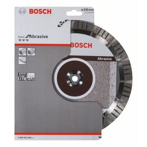 Diamanttrennscheibe Best for Abrasive für schnelle Schnitte in abrasives und weicheres Material. Die Aussparungen im Schneidesegment verringern die Seitenreibung und erhöhen die Effizienz. Die Diamantmatrix zeigt ihre Überlegenheit bei schnellen Schnitten in abrasives Material aller Art. Die lasergeschweißten Diamantschneidesegmente mit einer Höhe von 15 mm ermöglichen mit ihrer extremen Härte hohe Geschwindigkeiten. Diese Scheibe eignet sich für alle weicheren und abrasiven Materialien wie frischen Beton, Sandstein und Kalkstein.