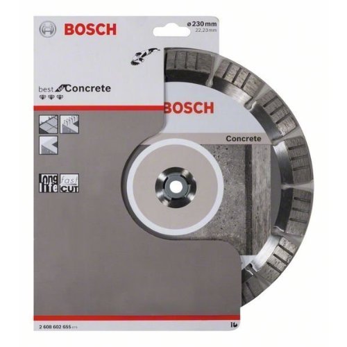 Die Diamanttrennscheibe Best for Concrete für schnelle Schnitt in Beton. Die lasergeschweißten, robusten und 15 mm hohen Diamantschneidesegmente ermöglichen schnelle Schnitte. Die Aussparungen im Diamantsegment minimieren Seitenreibung und ermöglichen Arbeiten mit hoher Geschwindigkeit. Auch ist die Diamantmatrix für sehr schnelles Schneiden optimiert. Die Scheibe ist geeignet für Beton aller Art.