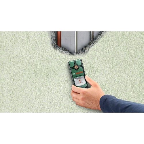 Digitales Ortungsgerät Truvo. Einschalten, orten, bohren! Einfaches Orten von stromführenden Kabeln und Metallobjekten. Klare LED-Ampelanzeige und Warnton signalisieren, wo besser nicht gebohrt wird. Praktische Auto-Kalibrierung für direktes Starten. Einfache Ein-Knopf-Bedienung. Abscannen von Wänden und Decken vor dem Bohren, um Bilder oder Lampen anzubringen. Im Lieferumfang enthalten: Batterien 3 x 1,5-V-LR03 (AAA), Karton