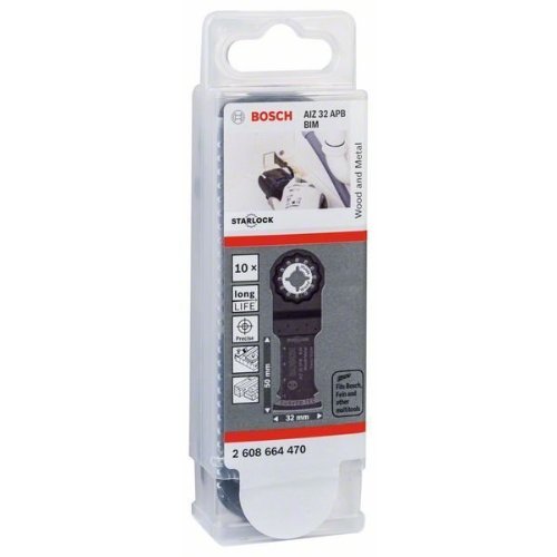 Das Sägeblatt Starlock AIZ 32 APB ermöglicht präzise bündige Schnitte und tiefe Tauchschnitte in Holz, Metall und Kunststoff. Dank der abgerundeten Blattspitze (Curved-Tec) sind die Schnitte von Anfang an präzise. Das robuste Starlock-Aufnahmesystem erhöht die Kontrolle über die Führung und ermöglicht mit direkter Kraftübertragung und reduzierter Lateralschwingung hochgradig präzise Schnitte. Dieses vielseitig einsetzbare Blatt schneidet auch sehr harte Verbundwerkstoffe aus Holz und Metall, wie auch ungehärtete Nägel und Schrauben, Rohre aus Nichteisenmetall und Profile kleinerer Abmessungen. Die extrem verschleißfesten und wärmebeständigen Zähne aus HSS-Stahl (High Speed Steel, Schnellarbeitsstahl) bieten eine lange Lebensdauer in Nichteisenmetallen und Schleifmaterialien. Das Starlock-Aufnahmesystem ermöglicht einen schnellen Blattwechsel ohne Blattberührung in drei Sekunden. Das Aufnahmesystem ermöglicht durch seine dreidimensionale enge Passung maximale Kraftübertragung zwischen Maschine und Zubehör.