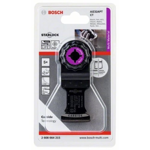 Das Präzisionsblatt Starlock AIZ 32 APT MultiMax sorgt für breite Schnitte und höhere Lebensdauer beim Schneiden von gehärtetem Metall. Seine hochwertigen Carbide-Zähne zertrennen abrasives und hartes Material bei höchster Verschleißfestigkeit. Die abgerundete Blattspitze (Curved-Tec) erhöht die Haltbarkeit, indem Zahnbruch verhindert wird. Zugleich ermöglicht sie besonders breite Tauchschnitte in Metall/abrasiven Materialien ohne Rattermarken und Abplatzungen. Das Blatt schneidet durch Metallbleche, abrasive Materialien wie Epoxid, GFK (glasfaserverstärkten Kunststoff), CFK (kohlefaserverstärkten Kunststoff), Gipskartonplatten, Zementfaserplatten und faserverstärkte Kunststoffe. Das Starlock-Aufnahmesystem ermöglicht einen schnellen Blattwechsel ohne Blattberührung in drei Sekunden. Das Aufnahmesystem ermöglicht durch seine dreidimensionale enge Passung maximale Kraftübertragung zwischen Maschine und Zubehör.