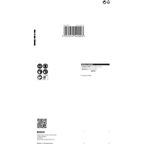 Zeitsparendes Schleifen von Farbe und Holz! Die in der Produktion erfolgte Kornausrichtung sorgt für ein aggressives Schleifen. Das Schleifen großer Flächen ist zeitaufwändig: Viele Schleifpapiere setzen sich schnell mit Staub zu und verlieren ihre Abrasivität, wodurch der eigentliche Schleifprozess mehr Zeit benötigt. Durch die Kombination von scharfen Körnern und spezieller Technologie, welche das Zusetzen verhindert, behält das EXPERT C470 Schleifpapier seine besonderen Fähigkeiten bei. Dies bedeutet, dass du schneller und länger arbeiten kannst, ohne Kompromisse beim Schleifergebnis eingehen zu müssen. Verbringe weniger Zeit mit dem Schleifen oder erledige mehr Arbeiten in der gleichen Zeit – mit dem Bosch EXPERT C470 Schleifpapier. Maximale Abtragsleistung mit Bosch Surface Structure.