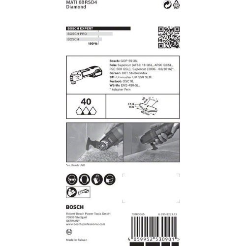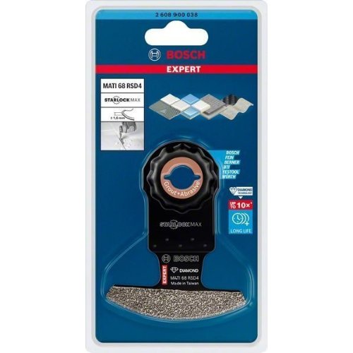 Hohe Lebensdauer in Fugenmörtel und weichen Fliesen! Spitzes Segmentsägeblatt für präzise Arbeiten bis in Ecken. Das Entfernen der Fugenmasse zwischen den Fliesen ist eine Aufgabe, die Bad- und Kücheninstallateure regelmäßig durchführen müssen. Multifunktionswerkzeuge sind dafür ideal geeignet, aber manchmal ist es schwierig, in die Ecken oder um Armaturen herum zu gelangen. Mit dem EXPERT Corner Blade Blatt ist dies kein Problem. Es bietet nicht nur eine lange Lebensdauer und schnelle Entfernung des Mörtels, sondern erreicht auch problemlos Ecken. Das Bosch EXPERT Corner Blade für Multifunktionswerkzeuge ist das perfekte Zubehör für Fliesenleger und Bad- oder Kücheninstallateure. Aufgrund seiner extrem langen Lebensdauer und Vielseitigkeit sollte es in deinem Werkzeugkasten ganz oben liegen. Extrem langlebige Schneidekante mit Bosch Diamond Technology.