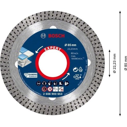 Bosch EXPERT HardCeramic Diamanttrennscheiben, 85 x 22.23 x 1,6 x 7 mm, für kleine Winkelschleifer