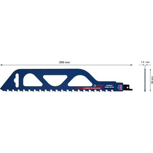 Expert ‘Hollow Brick’ mit herausragender Lebensdauer in Hohlziegeln! Dickeres Blatt für zusätzliche Robustheit und Stabilität. Handwerker und Maurer können durch das Schneiden von Hohlziegeln vor Ort ihre Arbeit beschleunigen und produktiver gestalten. Die meisten Säbelsägeblätter konnten jedoch in solchen abrasiven Mineralmaterialien nicht lange standhalten. Mit einem speziellen Carbide-Blatt wie dem EXPERT ‘Hollow Brick’ können Maurer Hohlziegel bequem zuschneiden, ohne ihre Blätter zu zerstören. Das Bosch EXPERT ‘Hollow Brick’ Säbelsägeblatt macht die Säbelsäge schnell zu einem bevorzugten Werkzeug unter Maurern. Schneide deine Steine mit der Bosch Carbide Technology zu. Herausragende Lebensdauer durch Bosch Carbide Technology