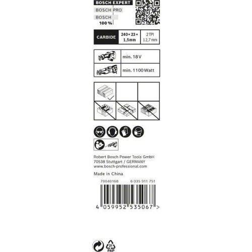 Expert ‘Hollow Brick’ mit herausragender Lebensdauer in Hohlziegeln! Dickeres Blatt für zusätzliche Robustheit und Stabilität. Handwerker und Maurer können durch das Schneiden von Hohlziegeln vor Ort ihre Arbeit beschleunigen und produktiver gestalten. Die meisten Säbelsägeblätter konnten jedoch in solchen abrasiven Mineralmaterialien nicht lange standhalten. Mit einem speziellen Carbide-Blatt wie dem EXPERT ‘Hollow Brick’ können Maurer Hohlziegel bequem zuschneiden, ohne ihre Blätter zu zerstören. Das Bosch EXPERT ‘Hollow Brick’ Säbelsägeblatt macht die Säbelsäge schnell zu einem bevorzugten Werkzeug unter Maurern. Schneide deine Steine mit der Bosch Carbide Technology zu. Herausragende Lebensdauer durch Bosch Carbide Technology