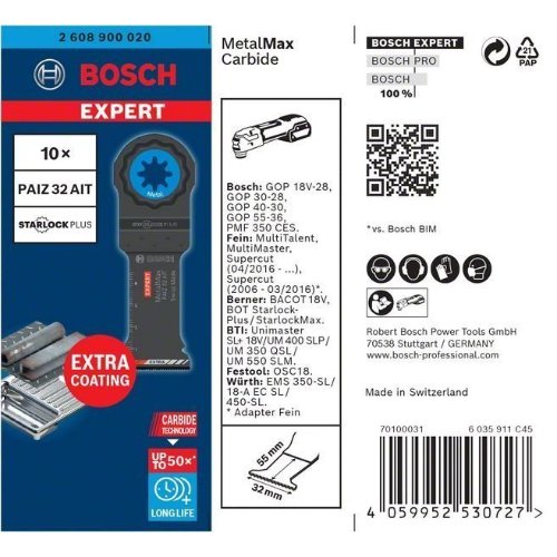 Herausragende Lebensdauer in harten und zähen Metallen! Zusätzliche Beschichtung macht Carbide widerstandsfähiger! Wenn gehärtete Schrauben rosten oder auf andere Weise stecken bleiben, besteht die einzige Option darin, sie flach an der Oberfläche abzuschneiden. Der EXPERT MetalMax macht auch in gehärtetem Metall einen perfekten bündigen Schnitt. Mit seiner herausragenden Langlebigkeit ist es das perfekte Zubehör für Handwerker, die harte Materialien mit einem Multifunktionswerkzeug schneiden möchten. Du hast gesehen, wie mühelos das Multifunktionswerkzeug in und durch Holz sägen kann: Mit dem Bosch EXPERT MetalMax Blatt für Multifunktionswerkzeuge kann Metall genauso zersägt werden. Es sägt sogar mühelos gehärtete Fensterschrauben und Armierungen. Herausragende Lebensdauer durch Bosch Carbide Technology