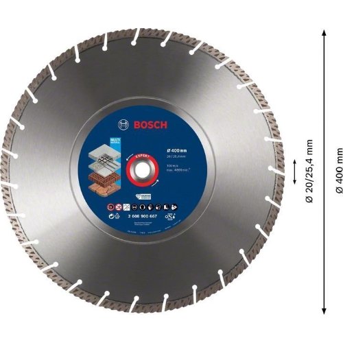 Herausragende Lebensdauer in Baumaterialien! Reibungsreduzierte Seitenflächen an den Segmenten zur Minimierung von Verschleiß an den Seiten. Auf modernen Baustellen müssen viele verschiedene, harte Materialien geschnitten … Die EXPERT MultiMaterial Trennscheibe ist das ideale Zubehör für vielbeschäftigte Bauprofis, die Beton, Ziegel, Dachziegel und Stahlbeton schneiden müssen, denn sie bietet einfach eine höhere Lebensdauer. Diese Mischung aus optimaler Diamantkörnung und fortschrittlichen Designmerkmalen sorgt für eine unübertroffene Langlebigkeit der Bosch EXPERT MultiMaterial Diamanttrennscheibe. Sie schneidet zuverlässiger und länger als andere Diamantscheiben von Bosch und bietet letztendlich ein hervorragendes Preis-Leistungs-Verhältnis. Extrem langlebige Schneidekante mit Bosch Diamond Technology.