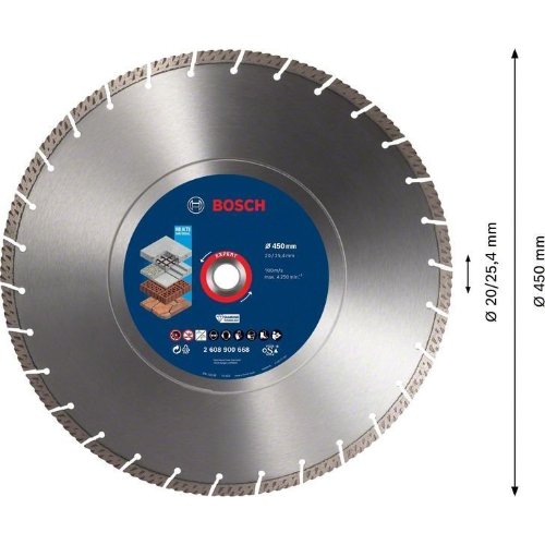 Herausragende Lebensdauer in Baumaterialien! Reibungsreduzierte Seitenflächen an den Segmenten zur Minimierung von Verschleiß an den Seiten. Auf modernen Baustellen müssen viele verschiedene, harte Materialien geschnitten … Die EXPERT MultiMaterial Trennscheibe ist das ideale Zubehör für vielbeschäftigte Bauprofis, die Beton, Ziegel, Dachziegel und Stahlbeton schneiden müssen, denn sie bietet einfach eine höhere Lebensdauer. Diese Mischung aus optimaler Diamantkörnung und fortschrittlichen Designmerkmalen sorgt für eine unübertroffene Langlebigkeit der Bosch EXPERT MultiMaterial Diamanttrennscheibe. Sie schneidet zuverlässiger und länger als andere Diamantscheiben von Bosch und bietet letztendlich ein hervorragendes Preis-Leistungs-Verhältnis. Extrem langlebige Schneidekante mit Bosch Diamond Technology.