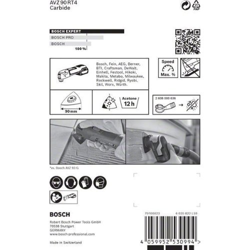 Hohe Lebensdauer beim Schleifen von verschiedensten Materialien! Die Delta-Form ermöglicht das Schleifen von Ecken und Kanten. Kleine, aber harte Schleifarbeiten zum Entfernen von altem Material und zum Vorbereiten von Oberflächen sind mit herkömmlichen Schleifmaschinen oder von Hand fast unmöglich zu erledigen. Selbst wenn du die Oberfläche erreichen kannst, reißt das Schleifpapier ein. Mit der EXPERT Sanding Plate kannst du jedoch mit deinem oszillierenden Multifunktionswerkzeug Ecken erreichen und schwierige Materialien schleifen. Die groben, offenen Körner des RT2 (Körnung 20) eignen sich am besten zum Entfernen von Mörtel hinter Fliesen, von Teppichkleber oder für die Grobbearbeitung von Holz. Der RT4 (Körnung 40) eignet sich am besten zum Entfernen von dickem Lack, er kann aber auch mit Mörtel und Kleber umgehen. Der RT6 (Körnung 60) ist der Lackspezialist, während der RT10 (Körnung 100) ideal zum Schleifen und Vorbereiten sauberer Holzoberflächen geeignet ist. Herausragende Lebensdauer durch Bosch Carbide Technology