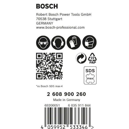Herausragende Lebensdauer in Stahlbeton! Durchdringt Stahlbeton mittels 4 Schneiden Vollhartmetalkopf. Das Bohren durch Stahlbeton ist eine schwierige Aufgabe, die den Hammerbohrern viel abverlangt. Sogar 4-Schneider nutzen sich schnell ab. Beim Wechseln des Zubehörs und beim Kaufen von Verbrauchsmaterialien kommt es zu Ausfallzeiten. Der Vollhartmetallkopf auf dem EXPERT SDS max-8X ist ein fortschrittlicher 4-Schneider, der aus einem einzigen Stück des härtesten Metalls besteht: Es verklemmt nicht und zeigt keine Schwäche beim Hammerbohren. Für Bauprofis, die regelmäßig Beton und Stahlbeton bohren, z. B. für schwere Anker oder Armierungsverlängerungen. Der Bosch EXPERT SDS max-8X Hammerbohrer bietet eine unvergleichliche Leistung, Zuverlässigkeit und Langlebigkeit. Es ist das ideale EXPERT Zubehör für SDS max Bohrhämmer. Extrem belastbare Bohrerspitze mit Bosch Carbide Technology.