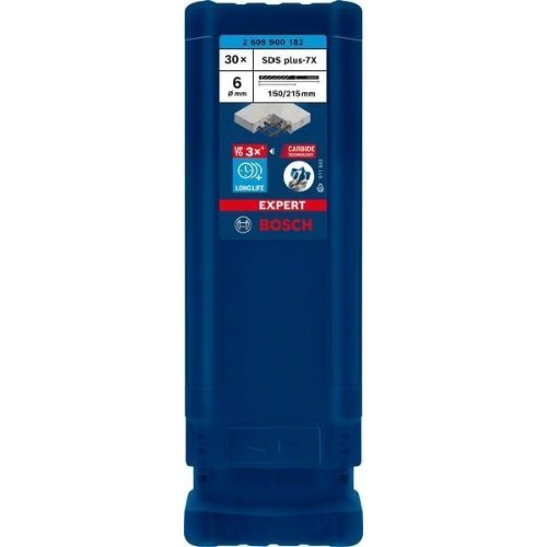 Herausragende Lebensdauer in Stahlbeton! Durchdringt Stahlbeton mittels 4 Schneiden Vollhartmetalkopf. Das Bohren durch Stahlbeton ist eine schwierige Aufgabe, die den Bohrern viel abverlangt. Normale Bohrer mit zwei Schneidekanten bleiben in der Armierung stecken und brechen ab. Der Vollhartmetalkopf auf dem EXPERT SDS plus-7X ist ein fortschrittlicher 4-Schneider, der aus einem einzigen Stück des härtesten Metalls besteht: Es verklemmt nicht und zeigt keine Schwäche beim Hammerbohren. Für Bauprofis, die regelmäßig in Beton und Stahlbeton bohren, beispielsweise für Bohrungen und Installationen. Der Bosch EXPERT SDS plus-7X Hammerbohrer bietet unvergleichliche Leistung, Zuverlässigkeit und Langlebigkeit. Es ist DAS EXPERTen-Zubehör für SDS plus Bohrhämmer. Extrem belastbare Bohrerspitze mit Bosch Carbide Technology.