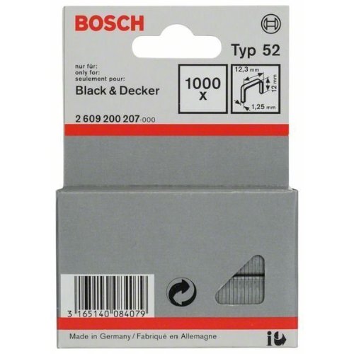 Die Flachdrahtklammern, Typ 52, sind für die Tacker der Marke Black+Decker geeignet. Sie sind ideal für zahlreiche Anwendungen von Hand- und Heimwerkern mit vielen Materialien, wie z. B. mit dünnen Pappen, Folien, Etiketten, Papieren. Mit schmalem Rücken, damit sie weit in das Material gedrückt werden. Fester Sitz und unauffälliger Rücken.