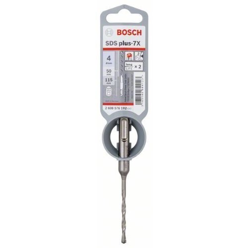 Der SDS plus-7X Bohrer bietet eine hervorragende Nutzungsdauer beim Bohren in armierten Beton. Sein 4-Schneider-Vollkopf besteht aus höchstqualitativem Carbide, wodurch der Kopf verstärkt wird und eine außergewöhnliche Schlagfestigkeit entsteht. Seine durchgängige Verteilung der Bohrkraft garantiert, dass kein Leistungsverlust auftritt, womit die Gesamtlebensdauer erhöht wird. Die einzigartige Diffusionsschweißtechnologie (IDS) von Bosch bietet starken Halt zwischen Kopf und Hals. Darüber hinaus reduziert das 4-spiralige Design mit breiten Kanälen den Verschleiß am Bohrer, indem ein effektiver Bohrmehlabtransport gewährleistet wird. Dieser Bohrer ist für den Einsatz für Bohrhämmer in Mauerwerk, Beton und armierten Beton vorgesehen. Um präzise Ergebnisse zu erzielen, ist anhand der Verschleißkennzeichnung zu erkennen, ob der Lochdurchmesser noch innerhalb der Toleranz für die Dübel liegt. Als Qualitätsbeleg trägt der Bohrer das Qualitätstestzeichen von PGM Masonry Drill Bit Association Board, das Konformität mit strengen Toleranzen, präzises Bohren und einen festen Halt der Befestigungsmaterialien garantiert. Er wird in Deutschland hergestellt.