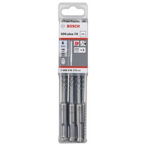 Der SDS plus-7X Bohrer bietet eine hervorragende Nutzungsdauer beim Bohren in armierten Beton. Sein 4-Schneider-Vollkopf besteht aus höchstqualitativem Carbide, wodurch der Kopf verstärkt wird und eine außergewöhnliche Schlagfestigkeit entsteht. Seine durchgängige Verteilung der Bohrkraft garantiert, dass kein Leistungsverlust auftritt, womit die Gesamtlebensdauer erhöht wird. Die einzigartige Diffusionsschweißtechnologie (IDS) von Bosch bietet starken Halt zwischen Kopf und Hals. Darüber hinaus reduziert das 4-spiralige Design mit breiten Kanälen den Verschleiß am Bohrer, indem ein effektiver Bohrmehlabtransport gewährleistet wird. Dieser Bohrer ist für den Einsatz für Bohrhämmer in Mauerwerk, Beton und armierten Beton vorgesehen. Um präzise Ergebnisse zu erzielen, ist anhand der Verschleißkennzeichnung zu erkennen, ob der Lochdurchmesser noch innerhalb der Toleranz für die Dübel liegt. Als Qualitätsbeleg trägt der Bohrer das Qualitätstestzeichen von PGM Masonry Drill Bit Association Board, das Konformität mit strengen Toleranzen, präzises Bohren und einen festen Halt der Befestigungsmaterialien garantiert. Er wird in Deutschland hergestellt.