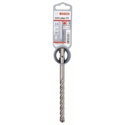 Der SDS plus-7X Bohrer bietet eine hervorragende Nutzungsdauer beim Bohren in armierten Beton. Sein 4-Schneider-Vollkopf besteht aus höchstqualitativem Carbide, wodurch der Kopf verstärkt wird und eine außergewöhnliche Schlagfestigkeit entsteht. Seine durchgängige Verteilung der Bohrkraft garantiert, dass kein Leistungsverlust auftritt, womit die Gesamtlebensdauer erhöht wird. Die einzigartige Diffusionsschweißtechnologie (IDS) von Bosch bietet starken Halt zwischen Kopf und Hals. Darüber hinaus reduziert das 4-spiralige Design mit breiten Kanälen den Verschleiß am Bohrer, indem ein effektiver Bohrmehlabtransport gewährleistet wird. Dieser Bohrer ist für den Einsatz für Bohrhämmer in Mauerwerk, Beton und armierten Beton vorgesehen. Um präzise Ergebnisse zu erzielen, ist anhand der Verschleißkennzeichnung zu erkennen, ob der Lochdurchmesser noch innerhalb der Toleranz für die Dübel liegt. Als Qualitätsbeleg trägt der Bohrer das Qualitätstestzeichen von PGM Masonry Drill Bit Association Board, das Konformität mit strengen Toleranzen, präzises Bohren und einen festen Halt der Befestigungsmaterialien garantiert. Er wird in Deutschland hergestellt.
