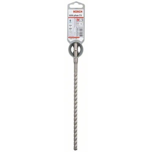 Der SDS plus-7X Bohrer bietet eine hervorragende Nutzungsdauer beim Bohren in armierten Beton. Sein 4-Schneider-Vollkopf besteht aus höchstqualitativem Carbide, wodurch der Kopf verstärkt wird und eine außergewöhnliche Schlagfestigkeit entsteht. Seine durchgängige Verteilung der Bohrkraft garantiert, dass kein Leistungsverlust auftritt, womit die Gesamtlebensdauer erhöht wird. Die einzigartige Diffusionsschweißtechnologie (IDS) von Bosch bietet starken Halt zwischen Kopf und Hals. Darüber hinaus reduziert das 4-spiralige Design mit breiten Kanälen den Verschleiß am Bohrer, indem ein effektiver Bohrmehlabtransport gewährleistet wird. Dieser Bohrer ist für den Einsatz für Bohrhämmer in Mauerwerk, Beton und armierten Beton vorgesehen. Um präzise Ergebnisse zu erzielen, ist anhand der Verschleißkennzeichnung zu erkennen, ob der Lochdurchmesser noch innerhalb der Toleranz für die Dübel liegt. Als Qualitätsbeleg trägt der Bohrer das Qualitätstestzeichen von PGM Masonry Drill Bit Association Board, das Konformität mit strengen Toleranzen, präzises Bohren und einen festen Halt der Befestigungsmaterialien garantiert. Er wird in Deutschland hergestellt.