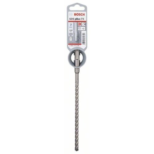Der SDS plus-7X Bohrer bietet eine hervorragende Nutzungsdauer beim Bohren in armierten Beton. Sein 4-Schneider-Vollkopf besteht aus höchstqualitativem Carbide, wodurch der Kopf verstärkt wird und eine außergewöhnliche Schlagfestigkeit entsteht. Seine durchgängige Verteilung der Bohrkraft garantiert, dass kein Leistungsverlust auftritt, womit die Gesamtlebensdauer erhöht wird. Die einzigartige Diffusionsschweißtechnologie (IDS) von Bosch bietet starken Halt zwischen Kopf und Hals. Darüber hinaus reduziert das 4-spiralige Design mit breiten Kanälen den Verschleiß am Bohrer, indem ein effektiver Bohrmehlabtransport gewährleistet wird. Dieser Bohrer ist für den Einsatz für Bohrhämmer in Mauerwerk, Beton und armierten Beton vorgesehen. Um präzise Ergebnisse zu erzielen, ist anhand der Verschleißkennzeichnung zu erkennen, ob der Lochdurchmesser noch innerhalb der Toleranz für die Dübel liegt. Als Qualitätsbeleg trägt der Bohrer das Qualitätstestzeichen von PGM Masonry Drill Bit Association Board, das Konformität mit strengen Toleranzen, präzises Bohren und einen festen Halt der Befestigungsmaterialien garantiert. Er wird in Deutschland hergestellt.
