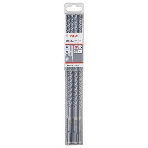 Der SDS plus-7X Bohrer bietet eine hervorragende Nutzungsdauer beim Bohren in armierten Beton. Sein 4-Schneider-Vollkopf besteht aus höchstqualitativem Carbide, wodurch der Kopf verstärkt wird und eine außergewöhnliche Schlagfestigkeit entsteht. Seine durchgängige Verteilung der Bohrkraft garantiert, dass kein Leistungsverlust auftritt, womit die Gesamtlebensdauer erhöht wird. Die einzigartige Diffusionsschweißtechnologie (IDS) von Bosch bietet starken Halt zwischen Kopf und Hals. Darüber hinaus reduziert das 4-spiralige Design mit breiten Kanälen den Verschleiß am Bohrer, indem ein effektiver Bohrmehlabtransport gewährleistet wird. Dieser Bohrer ist für den Einsatz für Bohrhämmer in Mauerwerk, Beton und armierten Beton vorgesehen. Um präzise Ergebnisse zu erzielen, ist anhand der Verschleißkennzeichnung zu erkennen, ob der Lochdurchmesser noch innerhalb der Toleranz für die Dübel liegt. Als Qualitätsbeleg trägt der Bohrer das Qualitätstestzeichen von PGM Masonry Drill Bit Association Board, das Konformität mit strengen Toleranzen, präzises Bohren und einen festen Halt der Befestigungsmaterialien garantiert. Er wird in Deutschland hergestellt.