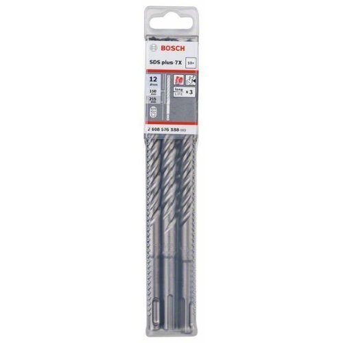 Der SDS plus-7X Bohrer bietet eine hervorragende Nutzungsdauer beim Bohren in armierten Beton. Sein 4-Schneider-Vollkopf besteht aus höchstqualitativem Carbide, wodurch der Kopf verstärkt wird und eine außergewöhnliche Schlagfestigkeit entsteht. Seine durchgängige Verteilung der Bohrkraft garantiert, dass kein Leistungsverlust auftritt, womit die Gesamtlebensdauer erhöht wird. Die einzigartige Diffusionsschweißtechnologie (IDS) von Bosch bietet starken Halt zwischen Kopf und Hals. Darüber hinaus reduziert das 4-spiralige Design mit breiten Kanälen den Verschleiß am Bohrer, indem ein effektiver Bohrmehlabtransport gewährleistet wird. Dieser Bohrer ist für den Einsatz für Bohrhämmer in Mauerwerk, Beton und armierten Beton vorgesehen. Um präzise Ergebnisse zu erzielen, ist anhand der Verschleißkennzeichnung zu erkennen, ob der Lochdurchmesser noch innerhalb der Toleranz für die Dübel liegt. Als Qualitätsbeleg trägt der Bohrer das Qualitätstestzeichen von PGM Masonry Drill Bit Association Board, das Konformität mit strengen Toleranzen, präzises Bohren und einen festen Halt der Befestigungsmaterialien garantiert. Er wird in Deutschland hergestellt.