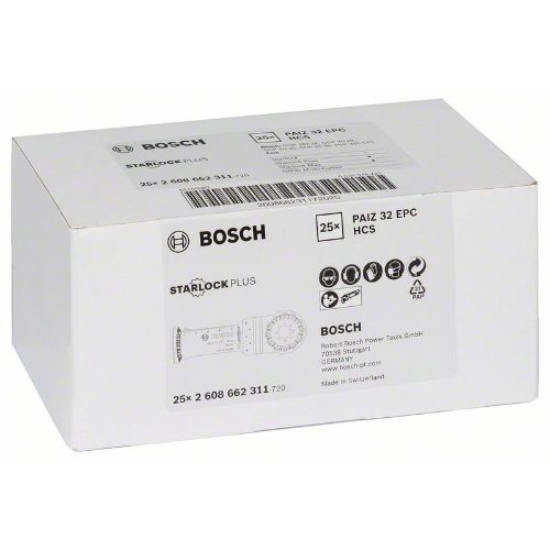 Das Tauchsägeblatt Starlock PAIZ 32 EPC ermöglicht tiefe Schnitte in Holz. Seine Länge von 60 mm erhöht die Reichweite für ausgedehnte Schnitte. Die direkte Kraftübertragung und das robuste Starlock-Aufnahmesystem reduzieren Lateralschwingung und ermöglichen größere geführte Schnitte. Wegen dieses Merkmals ist dieses Produkt ideal geeignet für Tauchschnitte in Weichholz, das Sägen von Aussparungen in Möbelbauteile, das bündige Ablängen von Holzbauteilen und das Durchtrennen von massivem Weichholz. Die abgerundete Blattspitze (Curved-Tec) erleichtert das Anfertigen präziser und glatter Tauchschnitte Das System Starlock Plus ermöglicht sehr schnelle, tiefe und vielfältige Tauchschnitte. Zusätzlich ermöglicht das Starlock-Aufnahmesystem schnellen Blattwechsel in drei Sekunden ohne Blattberührung. Das spezielle Starlock-Aufnahmesystem ermöglicht durch seine dreidimensionale enge Passung maximale Kraftübertragung zwischen Maschine und Zubehör.