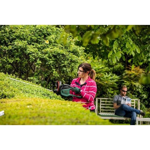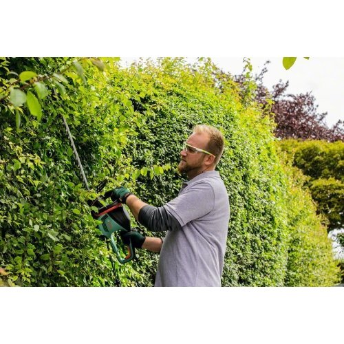 Heckenschere AdvancedHedgeCut 65. Problemloses Trimmen großer Hecken mit 80% niedrigerem Geräuschpegel. ProSilence ermöglicht eine kraftvolle Leistung mit 80% Geräuschdämpfung (93 dB(A)). Messerlänge von 65 cm und 34 mm Zahnabstand für intensive Trimmarbeiten. Rutschkupplung mit hohem Drehmoment (50–70 Nm) ermöglicht kraftvolle Schnitte durch dicke Äste. Perfekt zum Trimmen mittelgroßer bis großer Hecken. Kraftvoller 500-Watt-Motor und hohe Schneidkraft für schnelle Ergebnisse. Im Lieferumfang enthalten: Kartonschachtel