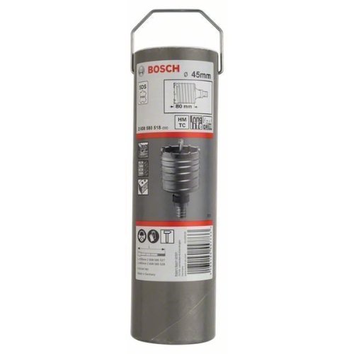 Die SDS max-9 Hohlbohrkrone ist ideal für das Schneiden von tiefen Löchern bei der Installation von Schalterdosen geeignet. Sie besteht aus höchst robustem Carbide mit feiner Körung, das optimale Verschleißfestigkeit beim Bohren sicherstellt. Darüber hinaus ist die Anzahl der asymmetrischen Carbide-Zähne am Bohrer an seinen Durchmesser angepasst, womit er zur richtigen Wahl bei Bohrungen für schnellen Arbeitsfortschritt bei geräuscharmem Betrieb wird. Sein Schaft in zweispiraliger U-Form ist gut für den Bohrmehlabtransport und ein Durchbruchbohren geeignet, während das einteilige Design eine optimale Kraftübertragung von der Maschine gewährleistet. Der Bohrer ist für den Einsatz in Beton, Mauerwerk und Kalksandstein vorgesehen. Das Produkt ist auch zweiteilig erhältlich.