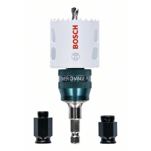 Das Starter-Set ermöglicht die Aufrüstung jeder Standard-Lochsäge auf das Power Change Plus System. Das Set enthält zwei Adaptermuttern als schlüssellose Verbindung zwischen Elektrowerkzeugen und Lochsägen. Darüber hinaus enthält es einen schlüssellosen Power Change Plus-Adapter und einen Zentrierbohrer.