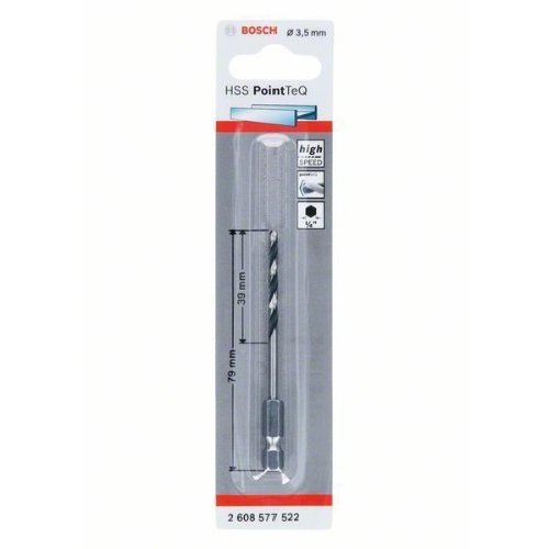 Der HSS-Spiralbohrer PointTeQ mit Sechskantschaft liefert schnelle Ergebnisse beim Bohren in Metall. Der für Hochgeschwindigkeitsbohrungen entwickelte Bohrer erzeugt minimale Wärme und macht den Bohrer verschleißfest. Das PointTeQ-Design an der Bohrspitze sorgt für kontinuierliche Schärfe und hohe Langlebigkeit. Die selbstzentrierende Spitze verhindert Wandern und ermöglicht schnelles und einfaches Anbohren. Die mit Schwarzoxid beschichtete Bohrspirale ermöglicht ein schnelles Abtragen der Späne. Für eine noch höhere Zuverlässigkeit bietet der Sechskantschaft des Bohrers Stabilität und eine feste Verbindung zwischen Bohrer und Futter. Der Körper des Bohrers wird gestärkt und es besteht ein niedrigeres Bruchrisiko für Bohrer mit einem Durchmesser von weniger als 6 mm. Die Bohrspitze des HSS-Spiralbohrers PointTeQ mit Kreuzanschliff ermöglicht perfektes Zentrieren. Bohrer, Typ N (kleiner Seitenspanwinkel) mit 135°-Design, gemäß DIN 338 hergestellt.