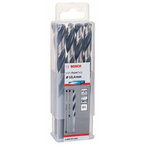 Der HSS-Spiralbohrer PointTeQ ermöglicht schnelles Bohren in Metall aufgrund des PointTeQ-Designs an der Bohrspitze. Schnelles und einfaches Anbohren ist möglich, da die selbstzentrierende Spitze Wandern verhindert. Aufgrund der erhöhten Bohrrate werden weniger Hitze und Verschleiß erzeugt. Das PointTeQ-Design an der Bohrspitze bleibt scharf und hält Dauereinsatz stand. Dieser Bohrer ist zum Bohren von Durchgangs- und Zentrierlöcher in legierten und unlegierten Stahl, in Nichteisenmetalle, Gussstahl, Gusseisen und Kunststoff. Es besteht ein niedriges Bruchrisiko, besonders für Bohrer mit einem Durchmesser unter 6 mm, da der Bohrer so hergestellt wurde, dass er einen hochelastischen Körper hat. Die mit Schwarzoxid beschichtete Nut ermöglicht eine schnelle Entfernung der Späne. Der HSS-Spiralbohrer PointTeQ ist gemäß DIN 338 hergestellt. Der Bohrer ist Typ N (kleiner Seitenspanwinkel) mit einem Spitzenwinkel von 135 Grad.