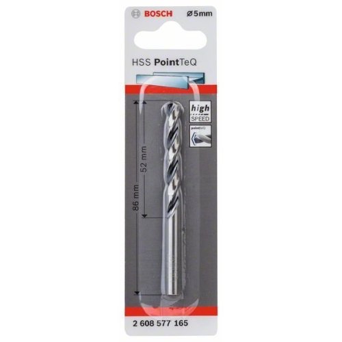 Der HSS-Spiralbohrer PointTeQ ermöglicht schnelles Bohren in Metall aufgrund des PointTeQ-Designs an der Bohrspitze. Schnelles und einfaches Anbohren ist möglich, da die selbstzentrierende Spitze Wandern verhindert. Aufgrund der erhöhten Bohrrate werden weniger Hitze und Verschleiß erzeugt. Das PointTeQ-Design an der Bohrspitze bleibt scharf und hält Dauereinsatz stand. Dieser Bohrer ist zum Bohren von Durchgangs- und Zentrierlöcher in legierten und unlegierten Stahl, in Nichteisenmetalle, Gussstahl, Gusseisen und Kunststoff. Es besteht ein niedriges Bruchrisiko, besonders für Bohrer mit einem Durchmesser unter 6 mm, da der Bohrer so hergestellt wurde, dass er einen hochelastischen Körper hat. Die mit Schwarzoxid beschichtete Nut ermöglicht eine schnelle Entfernung der Späne. Der HSS-Spiralbohrer PointTeQ ist gemäß DIN 338 hergestellt. Der Bohrer ist Typ N (kleiner Seitenspanwinkel) mit einem Spitzenwinkel von 135 Grad.