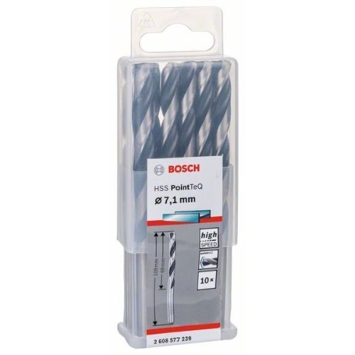 Der HSS-Spiralbohrer PointTeQ ermöglicht schnelles Bohren in Metall aufgrund des PointTeQ-Designs an der Bohrspitze. Schnelles und einfaches Anbohren ist möglich, da die selbstzentrierende Spitze Wandern verhindert. Aufgrund der erhöhten Bohrrate werden weniger Hitze und Verschleiß erzeugt. Das PointTeQ-Design an der Bohrspitze bleibt scharf und hält Dauereinsatz stand. Dieser Bohrer ist zum Bohren von Durchgangs- und Zentrierlöcher in legierten und unlegierten Stahl, in Nichteisenmetalle, Gussstahl, Gusseisen und Kunststoff. Es besteht ein niedriges Bruchrisiko, besonders für Bohrer mit einem Durchmesser unter 6 mm, da der Bohrer so hergestellt wurde, dass er einen hochelastischen Körper hat. Die mit Schwarzoxid beschichtete Nut ermöglicht eine schnelle Entfernung der Späne. Der HSS-Spiralbohrer PointTeQ ist gemäß DIN 338 hergestellt. Der Bohrer ist Typ N (kleiner Seitenspanwinkel) mit einem Spitzenwinkel von 135 Grad.