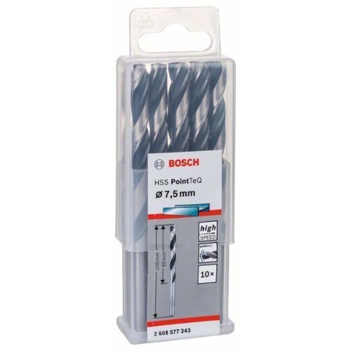 Der HSS-Spiralbohrer PointTeQ ermöglicht schnelles Bohren in Metall aufgrund des PointTeQ-Designs an der Bohrspitze. Schnelles und einfaches Anbohren ist möglich, da die selbstzentrierende Spitze Wandern verhindert. Aufgrund der erhöhten Bohrrate werden weniger Hitze und Verschleiß erzeugt. Das PointTeQ-Design an der Bohrspitze bleibt scharf und hält Dauereinsatz stand. Dieser Bohrer ist zum Bohren von Durchgangs- und Zentrierlöcher in legierten und unlegierten Stahl, in Nichteisenmetalle, Gussstahl, Gusseisen und Kunststoff. Es besteht ein niedriges Bruchrisiko, besonders für Bohrer mit einem Durchmesser unter 6 mm, da der Bohrer so hergestellt wurde, dass er einen hochelastischen Körper hat. Die mit Schwarzoxid beschichtete Nut ermöglicht eine schnelle Entfernung der Späne. Der HSS-Spiralbohrer PointTeQ ist gemäß DIN 338 hergestellt. Der Bohrer ist Typ N (kleiner Seitenspanwinkel) mit einem Spitzenwinkel von 135 Grad.