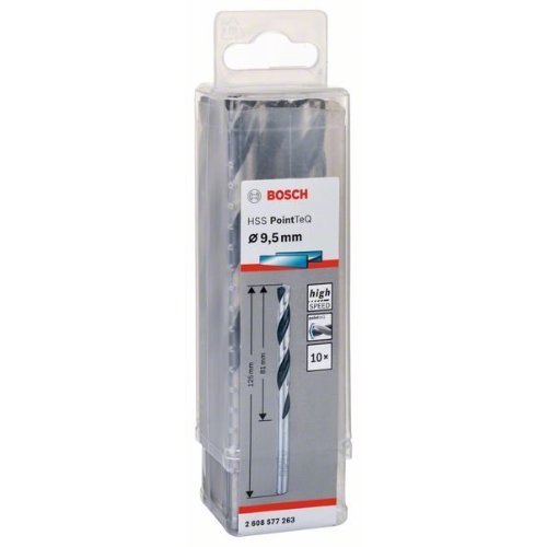 Der HSS-Spiralbohrer PointTeQ ermöglicht schnelles Bohren in Metall aufgrund des PointTeQ-Designs an der Bohrspitze. Schnelles und einfaches Anbohren ist möglich, da die selbstzentrierende Spitze Wandern verhindert. Aufgrund der erhöhten Bohrrate werden weniger Hitze und Verschleiß erzeugt. Das PointTeQ-Design an der Bohrspitze bleibt scharf und hält Dauereinsatz stand. Dieser Bohrer ist zum Bohren von Durchgangs- und Zentrierlöcher in legierten und unlegierten Stahl, in Nichteisenmetalle, Gussstahl, Gusseisen und Kunststoff. Es besteht ein niedriges Bruchrisiko, besonders für Bohrer mit einem Durchmesser unter 6 mm, da der Bohrer so hergestellt wurde, dass er einen hochelastischen Körper hat. Die mit Schwarzoxid beschichtete Nut ermöglicht eine schnelle Entfernung der Späne. Der HSS-Spiralbohrer PointTeQ ist gemäß DIN 338 hergestellt. Der Bohrer ist Typ N (kleiner Seitenspanwinkel) mit einem Spitzenwinkel von 135 Grad.