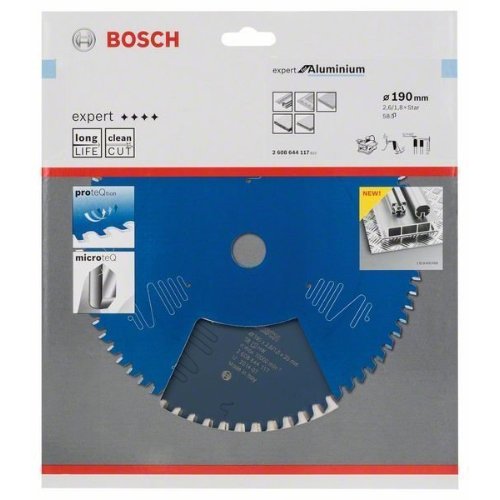 Das Expert for Aluminium Kreissägeblatt macht perfekte Schnitte in Aluminium. Die einzigartigen Extra Hard Microteq-Zähne aus der Eigenfertigung von Bosch werden aus sehr feinem Carbide-Korn hergestellt, das die Lebensdauer und Leistung des Blatts maximiert. Diese Leistung wird durch die Schutzbeschichtung ProteQtion des Blatts unterstützt. Sie verhindert Korrosion, ermöglicht zuverlässiges Schneiden und reduziert dabei die Reibung. Das Produkt ist mit Dämpfungsschlitzen für einen besonders ruhigen Lauf, deutlich weniger Geräusche und spürbar geringere Vibration ausgestattet. Dieses Sägeblatt für Aluminium, Nichteisenmetalle, Kunststoff, Epoxidharz und Holz verwenden. Das Kreissägeblatt Expert for Aluminium ist mit HLTCG-Zähnen (High-Low Triple Chip Ground) versehen, die robust genug für das Schneiden von Aluminium sind.