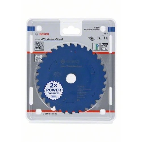 Bosch Kreissägeblatt für Akkusägen Expert for Stainless Steel, 150 x 1,6/1,3 x 20, 32 Zähne, für Handtrockensägen
