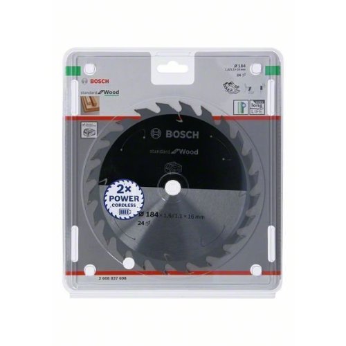 Bosch Kreissägeblatt für Akkusägen Standard for Wood, 184 x 1,6/1,1 x 16, 24 Zähne, für Handkreissägen
