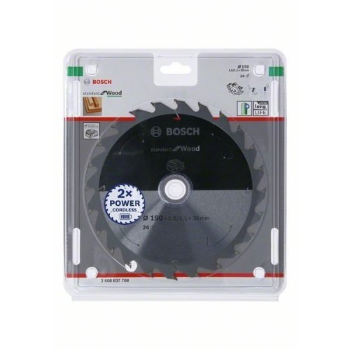Bosch Kreissägeblatt für Akkusägen Standard for Wood, 190 x 1,6/1,1 x 30, 24 Zähne, für Handkreissägen
