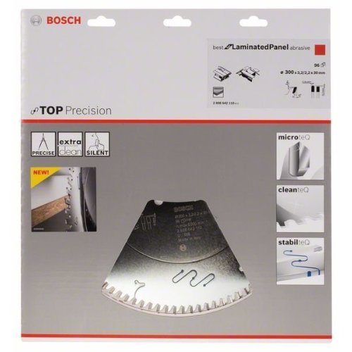 Top Precision Best for Laminated Panel Abrasive Kreissägeblatt ist ideal für höchst anspruchsvolle Anwendungen bei abrasiven laminierten Paneelen. Die Extra Hard-Microteq-Zähne aus robustem Carbide-Korn aus Eigenproduktion sorgen für hohe Leistung in Industriequalität. Polyurethangefüllte Dämpfungsschlitze: Vibrationen und Geräuschentwicklung werden stark verringert sowie die Schnittpräzision und der Arbeitskomfort verbessert. Das Kreissägeblatt verfügt über eine Cleanteq-Beschichtung, die die Anhaftung von Rückständen, wie z. B. Harz und Klebstoff, reduziert, um saubere Ergebnisse zu garantieren. Cleanteq hält das Blatt kühl, um es vor Korrosion zu schützen. Das Sägeblatt ist perfekt für Spanplatten und abrasive Paneelmaterialien, die an einer oder beiden Seiten beschichtet sind. Das Top Precision Best for Laminated Panels Kreissägeblatt verfügt über HLTCG-Zähne (High-Low Triple Chip Ground). HLTCG-Zähne machen das Blatt robust für Arbeiten auf abrasiven Materialien.