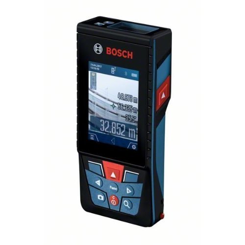 Laser-Entfernungsmesser GLM 120 C. Der Laser-Entfernungsmesser GLM 120 C Professional eignet sich ideal zum Dokumentieren der Umgebung und zum präzisen Vermessen, selbst bei Arbeiten im Außenbereich. Mit der digitalen Zieloptik ist im Außeneinsatz eine visuelle Zielausrichtung auf Entfernungen bis zu 120 m möglich. Ein 2,8-Zoll-Farbdisplay mit Schutzscheibe garantiert optimale Lesbarkeit und Haltbarkeit. Dank Micro-USB-Kabelanschluss und MeasureOn App ist eine schnelle Erfassung und Dokumentation der Messwerte sichergestellt. Dieser Laser-Entfernungsmesser ist die ultimative Wahl für das Messen auf große Entfernungen, in komplexen Umgebungen und bei schlechten Sichtverhältnissen. Der GLM 120 C Professional verfügt außerdem über eine anwendungsfreundliche Bedienschnittstelle mit Auswahlrad für den problemlosen Zugang zu allen Features und eine nützliche Hilfeoption mit detaillierten Darstellungen, sodass alle Funktionen problemlos zu verstehen sind. Im Lieferumfang enthalten: Trageschlaufe, Micro-USB-Kabel, Micro-USB-Ladegerät, Herstellerzertifikat, Schutztasche