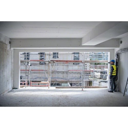 Laser-Entfernungsmesser GLM 50-25 G. Der GLM 50-25 G Professional bietet einen gut sichtbaren, grünen Laserpunkt für leichteres Zielen beim Messen über große Distanzen im Innenbereich. Mit seinem IP65-Design bietet er vollständigen Schutz vor Staubteilchen und Strahlwasser, während sein stoßabsorbierendes Gehäuse sogar Stürzen aus 1,5 m Höhe auf harten Beton standhält. Er verfügt über eine Taste für individuelle Anpassungen, mit der bevorzugte Messfunktionen und Einstellungen oder ein Vibrations-Feedback zur Bestätigung von Messungen eingestellt werden können. Sein intuitives User Interface unterstützt 30 Sprachen und bietet ein Farbdisplay, der Modus Große Zahlen sorgt für eine bessere Ablesbarkeit. Ideal zum Platzieren und Befestigen von Elementen an Holz, anderen Materialien und Trockenbaukonstruktionen, für Elektriker, Klimatechniker und Klempner. Bei der Verwendung für den Innenausbau ist er perfekt für Maler, Bodenleger, Fliesenleger und Zimmerer zum Berechnen des Materialbedars. Lange Batterielaufzeit mit Alkali-Batterien oder dem optionalen Li-Ion-Akkupack. Im Lieferumfang enthalten: Schutztasche, Trageschlaufe, 2x 1,5 V LR6-Batterie (AA)