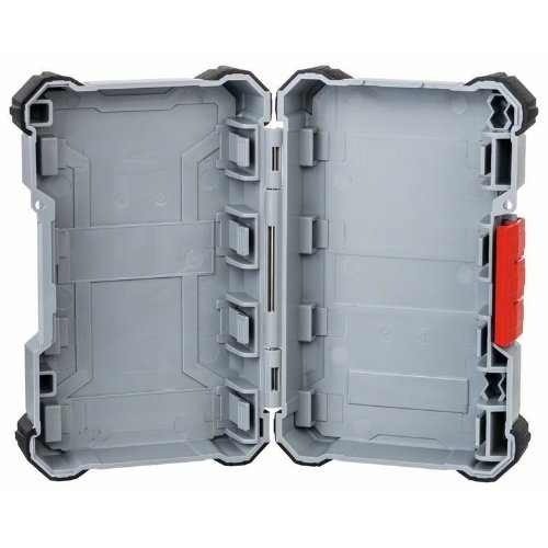Die Leerbox L bewahrt individuell zusammengestellte Zubehörsets auf. Die Leerbox besitzt Einschübe zum sicheren Einrasten der Kunststoffhalter der einzelnen Bits und ermöglicht so vielfältige Gestaltungsmöglichkeiten. Die Pick and Click Leerbox L besitzt zwei Aufnahmeseiten zur Bitaufbewahrung. Sie ist zudem mit Gummidämpfern für Schutz und Robustheit in widrigen Umgebungen ausgestattet. Die Box ist Teil des Systems Bosch Pick and Click, das individuell zusammenstellbare Zubehörsets für absolut flexible Bit-Sortimente ermöglicht. Einrasteinschübe sichern einzeln gekaufte Bitpacks individueller Sortimente für individuelle Sammlungen und ermöglichen das einfache Ersetzen alter Bitpacks.