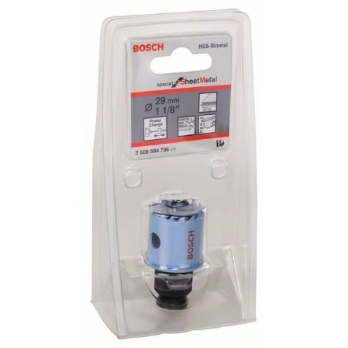Die Special for Sheet Metal Lochsäge bietet Langlebigkeit beim Schneiden durch Metall. Diese Lochsäge ist aus Bi-Metall-HSS (Hochgeschwindigkeitsstahl) angefertigt, mit 8 % Kobalt-Legierung, sodass ein geringeres Risiko eines Zahnbruchs sowie eine höhere Wärmebeständigkeit für extreme Widerstandsfähigkeit und lang anhaltendes Schneiden entstehen. Die Zahngeometrie mit Vario-Verzahnung ist ideal geeignet, um dünnes Material zu sägen, bei reduziertem Verschleiß auf der Schneidekante. Darüber hinaus verhindert eine Tiefenanschlagfunktion Durchbrüche, um die Arbeitsoberfläche zu schützen. Verwenden Sie diese Lochsäge für das Schneiden von Metallblech mit einer Dicke von weniger als 5 mm, wie beispielsweise unlegierten Stahl und Edelstahl. Die Special for Sheet Metal Lochsäge unterstützt den einzigartigen Power-Change-Adapter von Bosch mit dem schnellsten Adaptersystem auf dem Markt. Er ermöglicht das Trennen und Verbinden von Lochsäge und Zentrierbohrer mit nur einem Klick.