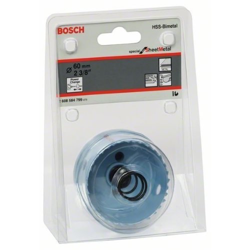 Die Special for Sheet Metal Lochsäge bietet Langlebigkeit beim Schneiden durch Metall. Diese Lochsäge ist aus Bi-Metall-HSS (Hochgeschwindigkeitsstahl) angefertigt, mit 8 % Kobalt-Legierung, sodass ein geringeres Risiko eines Zahnbruchs sowie eine höhere Wärmebeständigkeit für extreme Widerstandsfähigkeit und lang anhaltendes Schneiden entstehen. Die Zahngeometrie mit Vario-Verzahnung ist ideal geeignet, um dünnes Material zu sägen, bei reduziertem Verschleiß auf der Schneidekante. Darüber hinaus verhindert eine Tiefenanschlagfunktion Durchbrüche, um die Arbeitsoberfläche zu schützen. Verwenden Sie diese Lochsäge für das Schneiden von Metallblech mit einer Dicke von weniger als 5 mm, wie beispielsweise unlegierten Stahl und Edelstahl. Die Special for Sheet Metal Lochsäge unterstützt den einzigartigen Power-Change-Adapter von Bosch mit dem schnellsten Adaptersystem auf dem Markt. Er ermöglicht das Trennen und Verbinden von Lochsäge und Zentrierbohrer mit nur einem Klick.