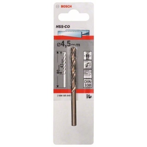 Der HSS-Co Spiralbohrer hat beim Bohren von rostfreiem Stahl eine lange Lebensdauer. Für diese verlängerte Lebensdauer sorgen die Metalllegierung mit 5 % Cobaltgehalt und der aus dem Vollen geschliffene HSS-Stahl mit ausgezeichneter Oberflächengüte, Verschleißfestigkeit und Hitzeschutz. Die zwei Schneidekanten und zwei Spiralnuten entfernen das Spangut schnell und verlängern damit zusätzlich die Lebensdauer. Dieser Bohrer bohrt legierten und unlegierten Stahl, rostfreien Stahl, Gusseisen, Gussstahl sowie säure- und hitzebeständigen Stahl. Der HSS-Co Spiralbohrer wird nach DIN 338 gefertigt. Er gehört zum Bohrertyp N (kleiner Seitenspanwinkel) mit Bohrspitze 135 Grad und Durchmessertoleranz h8. Die Bohrspitze mit Kreuzanschliff ermöglicht aktiven Bohransatz und perfektes Zentrieren ohne Wandern.